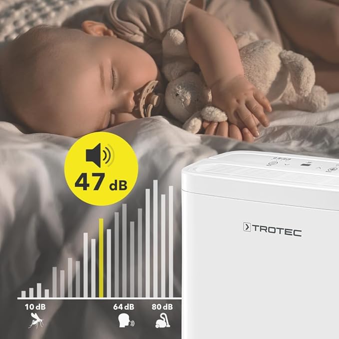 - Энергоэффективность и надежное осушение. Trotec TTK 27 E – это компактный осушитель воздуха, который лучше всего выполняет функцию контроля влажности в бытовых условиях. Он подходит для осушки комнат площадью до 15 м2. Он рассчитан на надежное и долговременное использование благодаря мощному компрессору и экологическому хладагенту, прибор может удалять до 12 литров влаги в сутки. Это отличный помощник для квартиры! Влажность быстро уменьшается во всем объеме помещения благодаря качественному вентилятору, что обеспечивает циркуляцию воздуха до 122 м³/час.